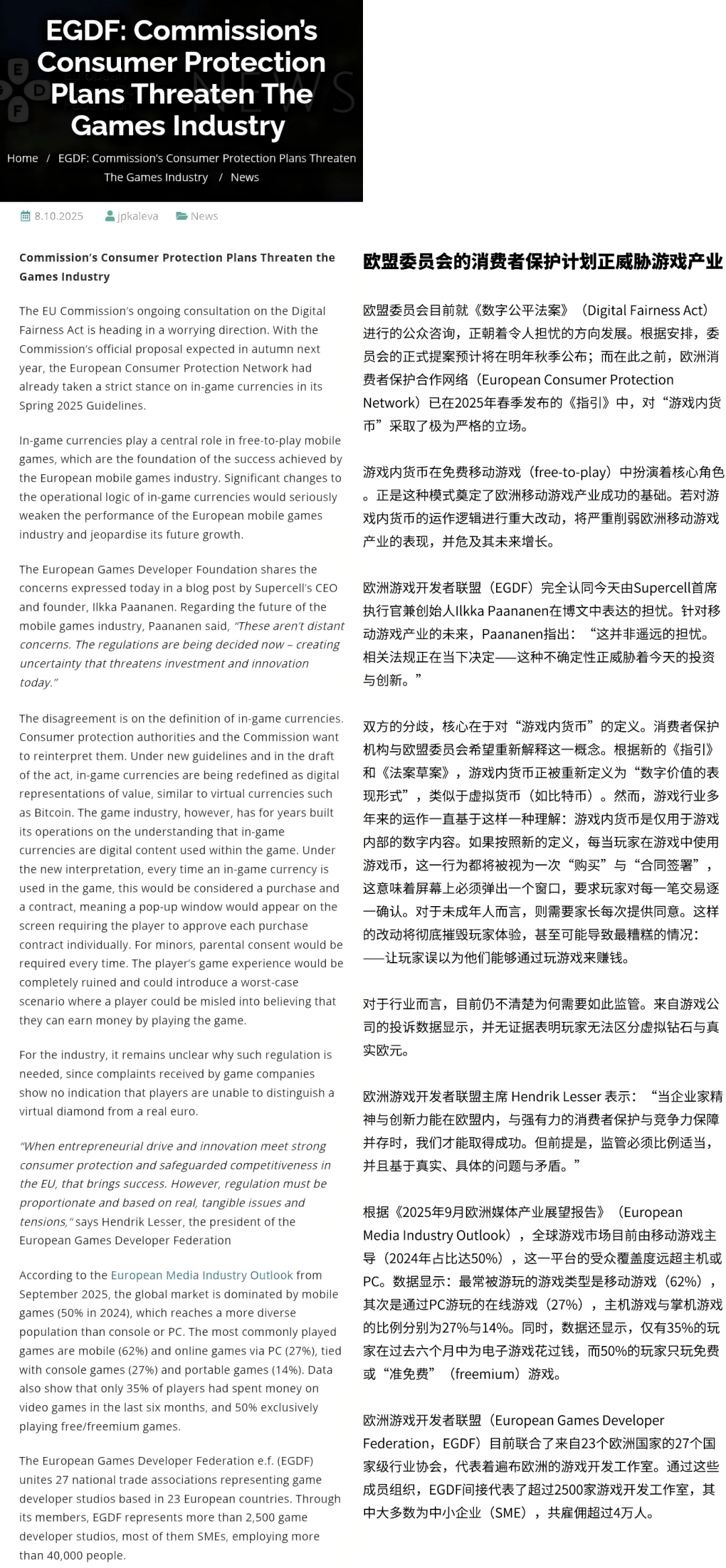 如果你觉得Ilkka的比喻有些绕,不理解这事可能造成多大的影响,不妨看看EGDF (European Games Developer Federation,欧洲游戏开发者联盟)在10月8日这天,紧跟Ilkka之后发出的文章: