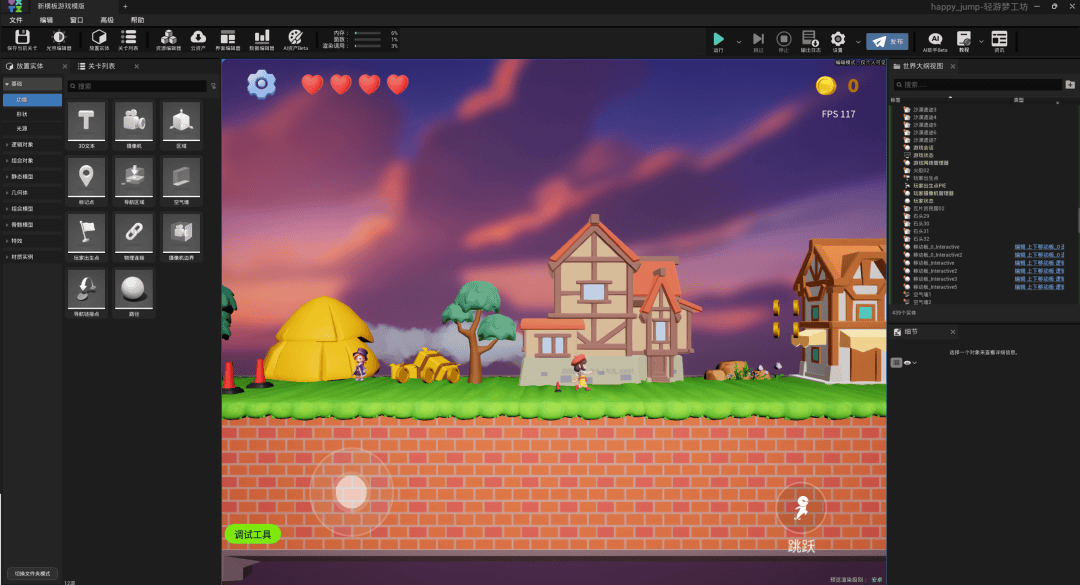 轻游梦工坊的破局思路,始于拆掉游戏开发的“高墙”。他们大胆提出,要让没有编程基础或美术背景的爱好者,也能将脑海中的创意变为可玩的游戏。“ 轻游梦工坊的核心设计目标就是大幅降低游戏开发的门槛。” 其团队表示。为了实现这一目标,团队并没有把AI仅仅当作一个附加功能,而是与腾讯混元大模型展开深度合作,把AI融入整个编辑器的底层逻辑。他们构建了无代码可视化编程、预制系统、海量资源库与AI生成的组合方案,形成一个尽量“傻瓜化”的工具体系。