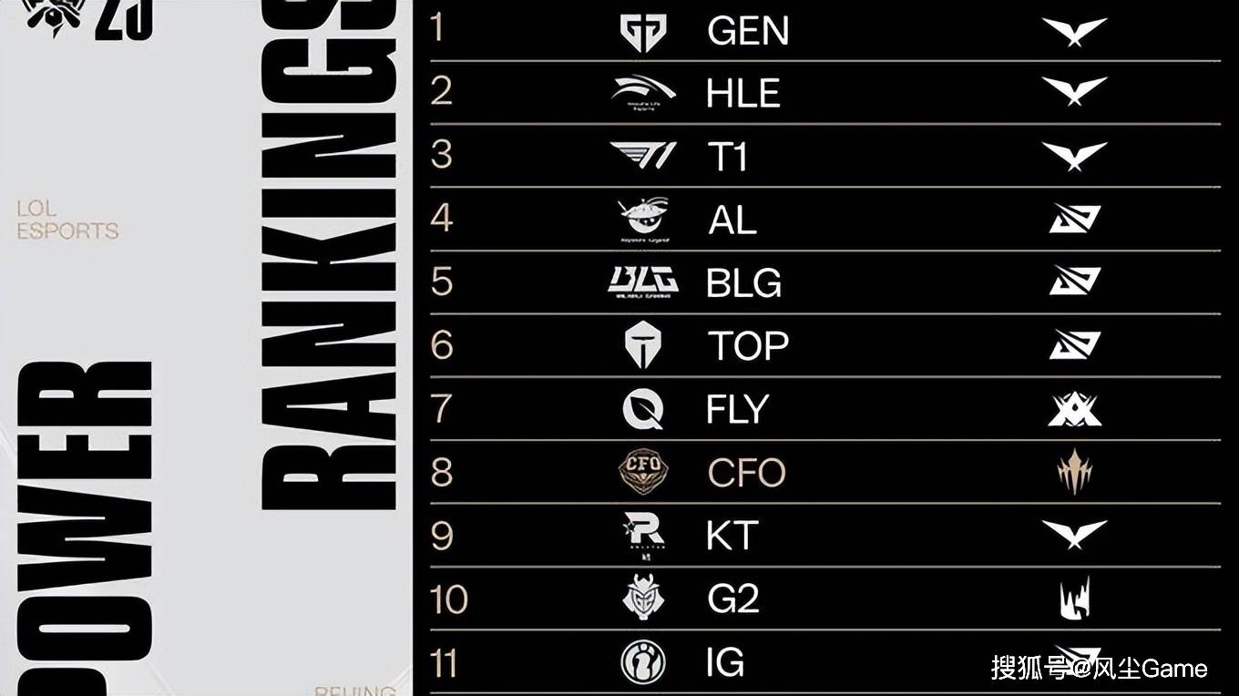 英雄联盟S15全球总决赛,再有2天就正式开赛了,LOL官方在近日,发布了17支队伍的战力排行榜,LCK的四支参赛队伍,全部位列前十,除了KT排名第九之外,剩下的三队包揽前三,而咱们是赛区,排名前十的有三支队伍,AL、BLG、滔搏,分别排在4-6名,IG则是跌出前10排第11。