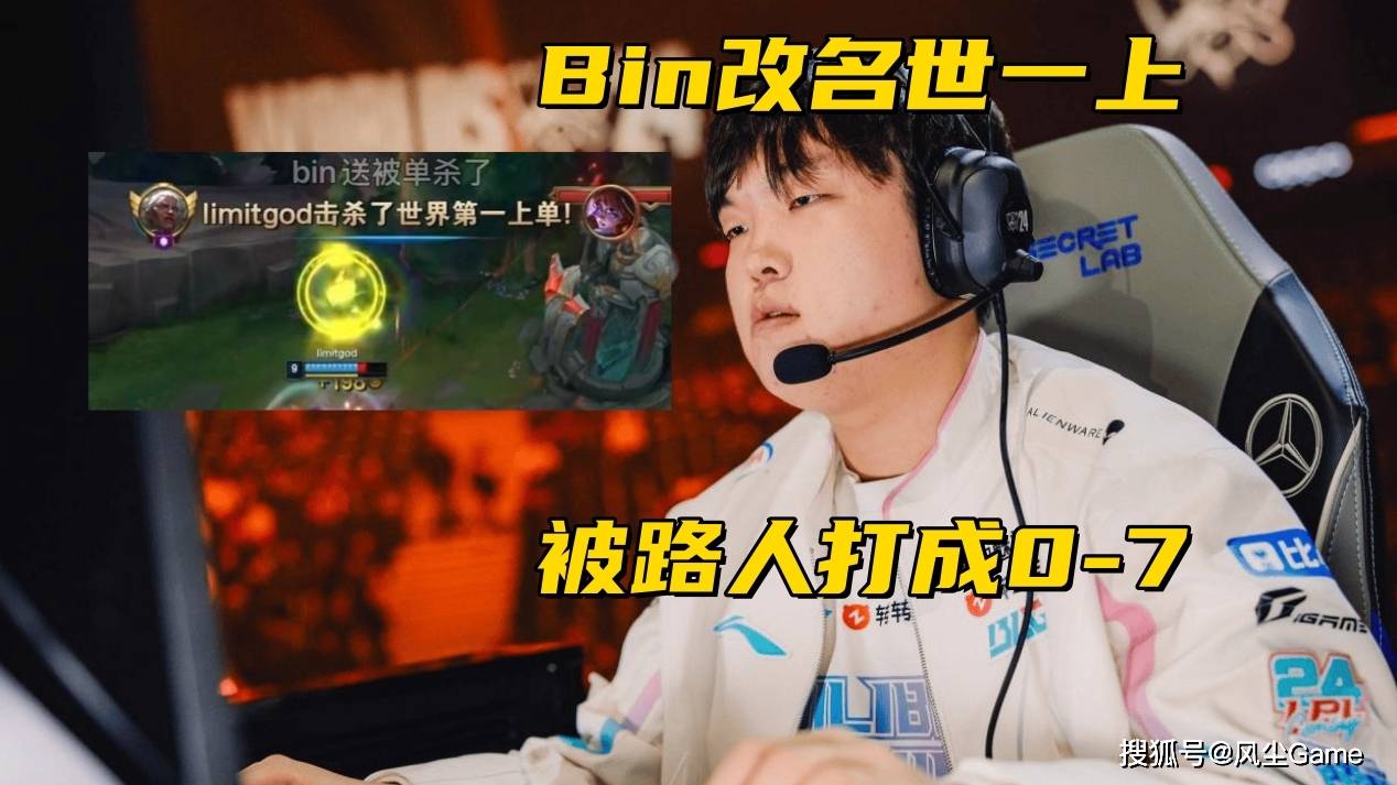 有意思的是,Bin把自己的ID,改成了“世界第一上单”,玩阿萝拉,把路人坑惨那一局,Bin哥被队友疯狂嘲讽:从哪混进来个翡翠?投降的时候,队友直接打字:改个名字,世界第一人机上路,好家伙,这队友是真不给世一上面子啊,不过顶着这个ID,游戏没打好,被嘲讽也只能受着了。
