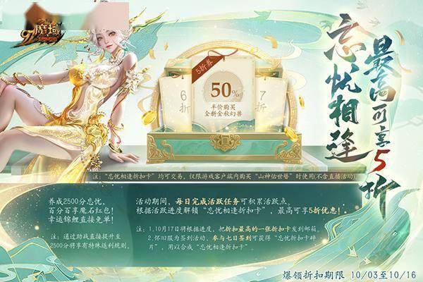 针对本次联动幻兽,官方还推出了超贴心的“相逢忘忧”预热活动:从10月3日开始,神火源力评分够20.9万的玩家,每天做做日常任务攒活跃点,累计到2000点就能拿到最高5折的“忘忧相逢折扣卡”!怀旧服玩家更是轻松,连续签到7天就能合成5折卡。等到10月17日幻兽正式上线,用5折折扣卡就能半价购买幻兽信物【山神佑世簪】——这波操作,等于官方直接帮你省下一半的钱!