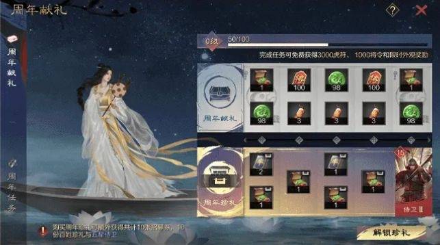各位率批还可以通过付费解锁周年珍礼,就能额外获得10份招募券、五星侍卫和永久聊天气泡以及额外的“百姓珍礼”宝箱。论派送福利,率土之滨真的没有在针对谁~