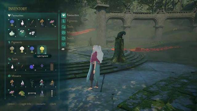 “灵魄”标签页陈列着色彩缤纷的小型生物,其中明确标有“光之灵魄”——暗示着生物收集与利用体系。“镶嵌”标签同样引人遐想,这些绘有预告片中出现过的鹿形生物等图案的镶嵌物,可能用于装饰系统。另一张截图中,“植物”标签(有时标注为“种子”标签)清晰展现了灌木种子等各类种植素材,并暗示游戏将内置植物图鉴系统。