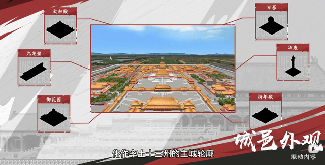 大家日夜征战的主城,即将披上红墙黄瓦,朱门上的铜钉映照着冰冷的兵戈甲光,一眼望去,仿佛完成了一次穿越六百年的对话。太和殿、九龙壁、御花园、日晷、华表、祈年殿,这些经典建筑都被一一复刻。这下在游戏里排兵布阵时,"天子守国门"的氛围感不就出来了?细节见真章,率土之滨策划团队值得加鸡腿。