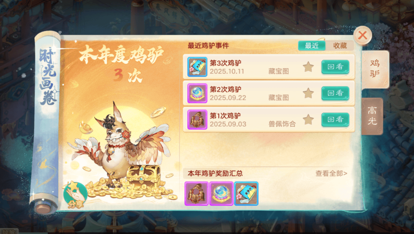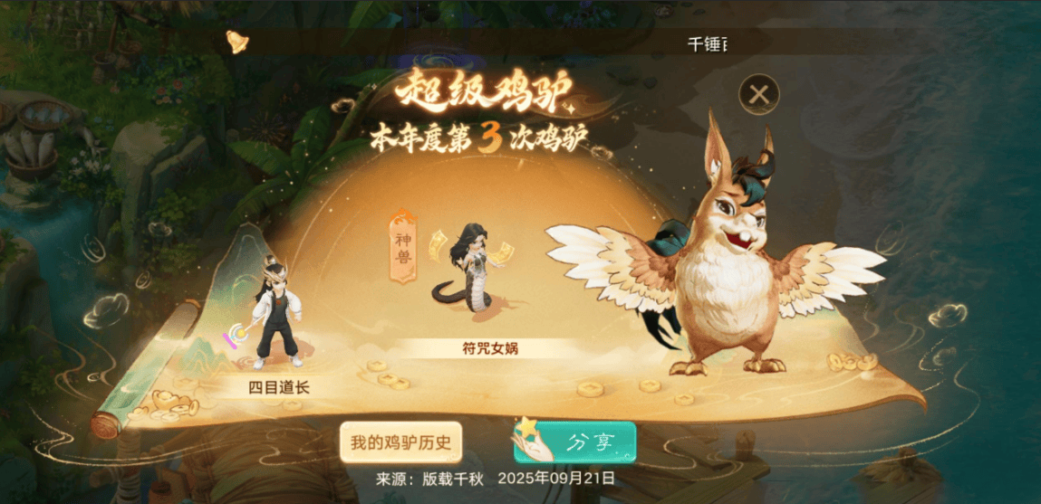 ②鸡驴探宝:每日派遣“崽崽的棒棒糖”至指定地图(如长安、龙宫)探险,可能获得神兽、高级藏宝图等奖励,活动已结束。