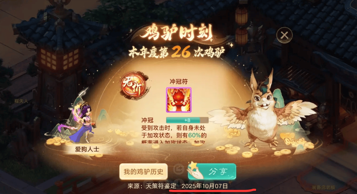 大话西游手游鸡驴时刻怎么触发?最近看到大家鸡驴有点猛,有玩家竟然一发入魂,龙兔直接获得凝神资格,省了一个凝神丹,意外收获赚了8亿。