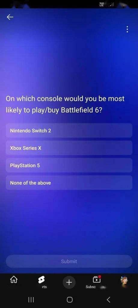 据悉,该调查旨在了解玩家最倾向于在哪些游戏平台上体验这款对硬件性能要求较高的第一人称射击游戏《战地6》,而“任天堂Switch2”被明确列为备选平台之一。