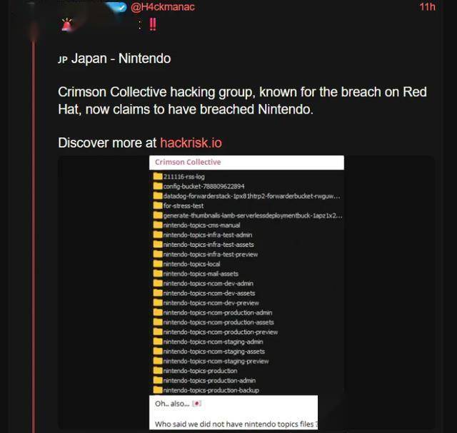 业内分析认为,若此次黑客攻击得到证实,任天堂或将面临潜在的数据泄露风险。此前,任天堂曾遭遇类似安全事件,导致部分用户账户受到影响。