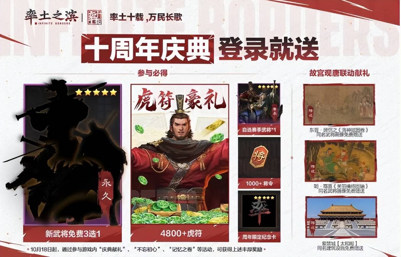 所以别犹豫了,赶紧叫上当年一起征战的兄弟,回到率土的十周年庆典里,一边“撸”故宫文物级奖励,一边把虎符、将令这些硬核福利抱回家,在文化与福利的双重狂欢里,续写你们的率土传奇吧!