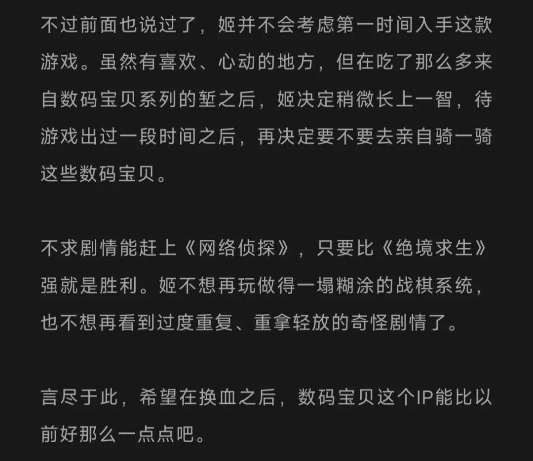 姬不知道下次出新作时,姬还会不会买账。至少现在,姬只想去摸摸自己辛辛苦苦养出来的数码兽。