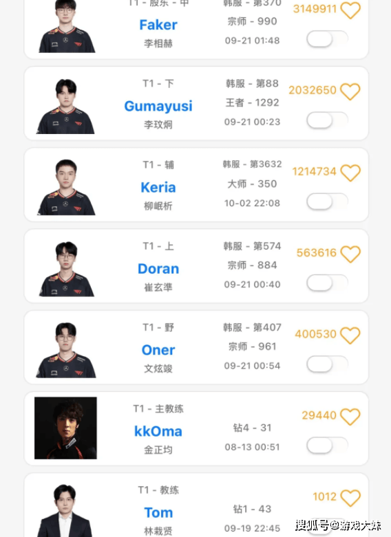按理说,在这样关键的生死战前,双方战队都应该处于高强度备战状态,然而,从目前的韩服训练记录来看,T1的状态似乎有些“出乎意料的松散”,自第三赛段结束以来,队员们的账号更新频率极低,除了辅助选手Keria偶尔登录外,其余几位核心选手几乎停留在9月21日。