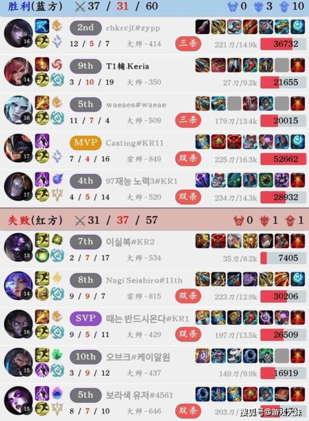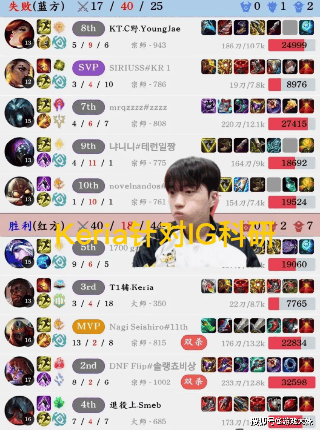 这个英雄原本是标准的上单位,几乎从未出现在下路位置,但在 Keria 手中,他带上“启封的秘籍”天赋,利用高坦度与控制能力为队伍开团,居然打出了不俗的效果,此外,他还尝试了打野英雄蔚辅助的套路,虽然战绩不错,但打法风格极为激进:带“丛刃”与“引燃”,全输出出装,看起来更像是个“下路打野”,而非传统意义上的辅助。
