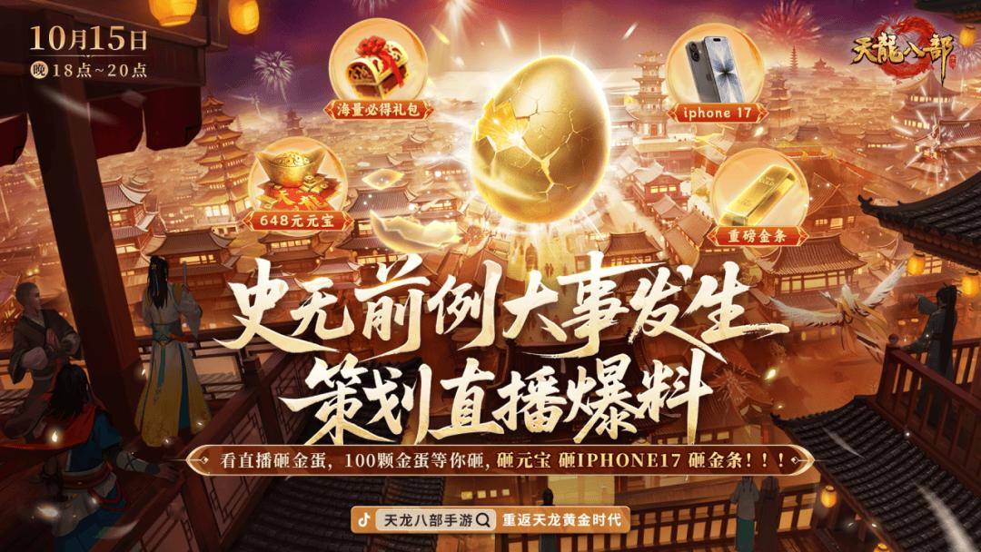想了解更多「轻松版天龙」的独家消息?10月15日18:00-20:00,请锁定天龙抖音官方直播间,策划将面对面直播爆料,你想知道的都在这里!看直播、砸金蛋!100颗金蛋等你砸,iPhone 17、金条等豪礼拿不停!
