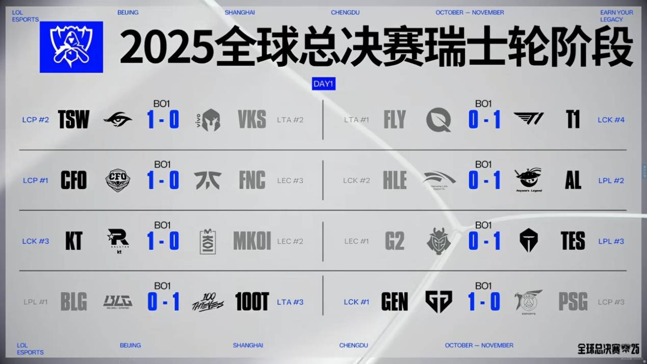 首先和大家简单回顾一下第一天比赛的结果,LPL赛区方面,BLG爆冷不敌北美三号种子100T,AL则力克韩国二号种子HLE,TES作为LPL最后出战的队伍也是成功击败欧洲赛区一号种子G2,顺利拿下首胜。