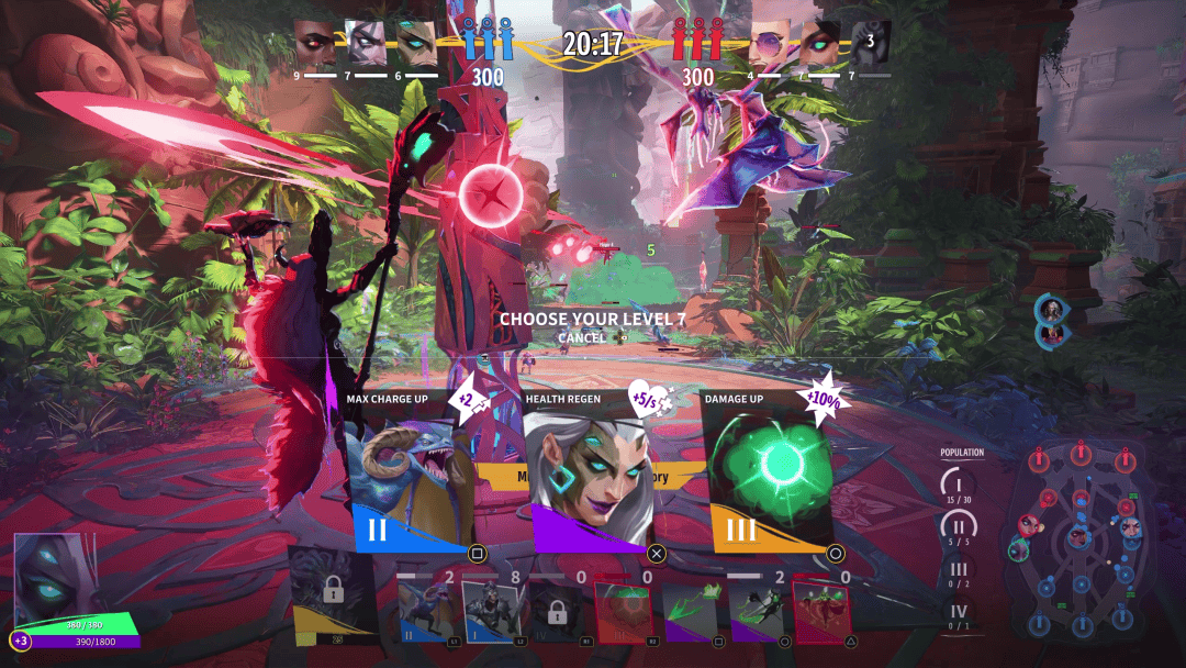 「我们从不叫它MOBA,而是称它为动作策略游戏。我们最初的目标也不是挑战其他MOBA,只是我们认为这种玩法很有趣。从策略游戏的角度出发,将快节奏的动作带入RTS,这就是团队的初衷。」de Fondaumière说。