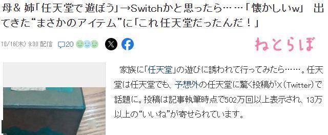 如今任天堂这三个字已经基本和Switch以及电子游戏捆绑在一起了,不过估计有不少新玩家根本不知道任天堂还有别的含义,近期一位日本女玩家发推,称受母亲邀请一起玩任天堂,心想母亲也喜欢上了Switch?去了才知道竟然不是Switch。