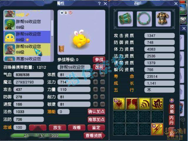 好了,这个59级神木林展示完毕,硬件搭配还是非常不错的。尤其是宝宝各种类型都有,打PK完全够用了。59级拥有7600多的成就,还是很难得的,各位你的成就有他的的高吗?