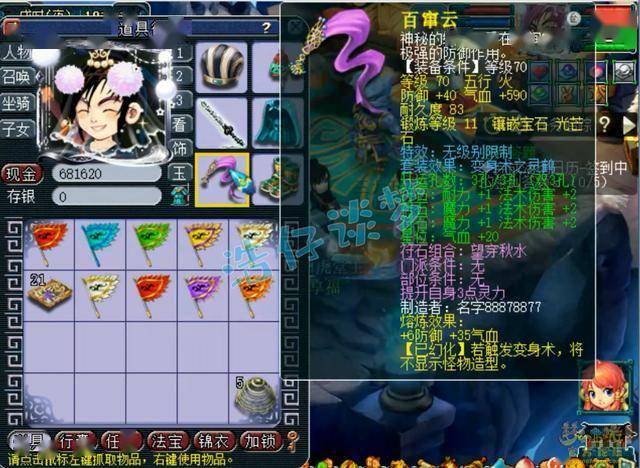 70级无级别灵鹤套男头,打了11锻月亮石。