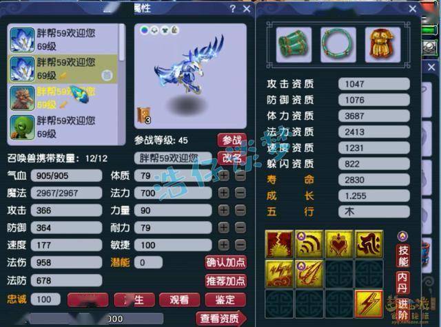 8技能高连血攻雷鸟人,攻资养出了加号,成长也很不错,赐福了两个超级技能。