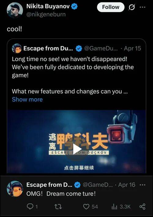 说实话《鸭科夫》能取得好口碑并不令我意外。《鸭科夫》6月测试就给我留下不错的好印象,玩家反馈积极,都在敲桌等着制作组早点把游戏端上来。就连《逃离塔科夫》制作人NJT看到《鸭科夫》后,也曾转发博文喊酷。