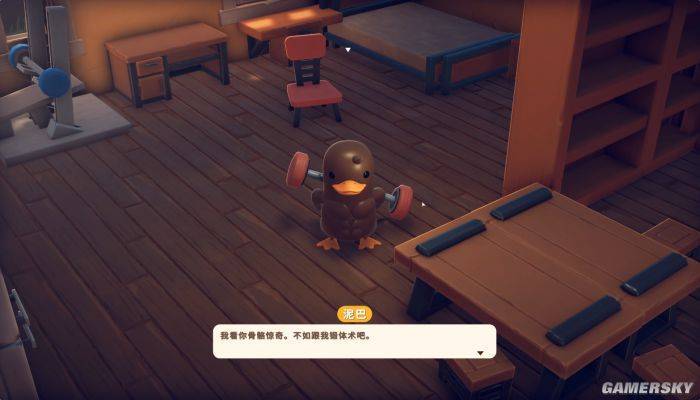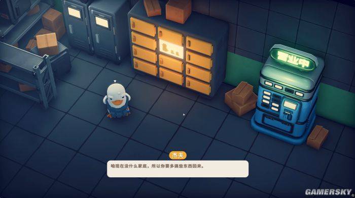是的,《逃离鸭科夫》更像是一款标准的任务驱动游戏,以至于在很多时候我都产生了自己是不是在玩一款角色扮演游戏的错觉。游戏有着极其明确的主线流程——玩家所扮演的鸭子从奇异梦境醒来后,便发现自己处于一个名为“鸭科夫”的世界。而经过NPC的“话聊”后,便得知了最终目标是建造飞船和小伙伴们逃离“鸭科夫星球”。