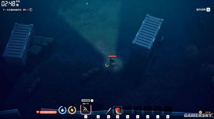 比如夜晚不仅视野范围大幅缩小,还会遭遇强力的机械蜘蛛,而在风暴天气下,地图中也会刷新特殊的敌人,并且如果玩家没有获取特定防护装备,角色还会持续受到伤害。