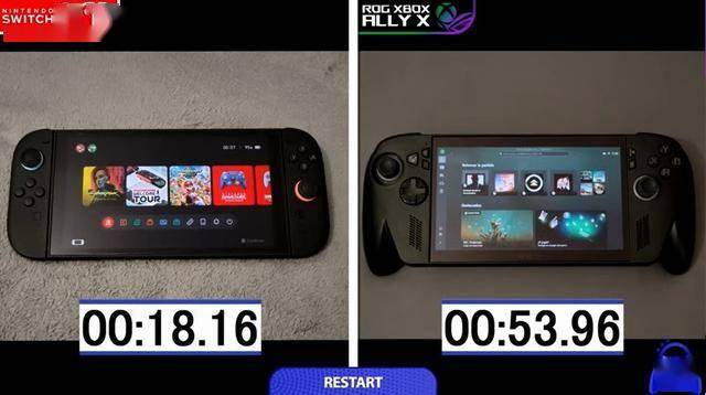 开机速度则是Switch 2的主场,比Ally X快约6秒完成启动。重启速度更是比微软掌机快35秒以上。