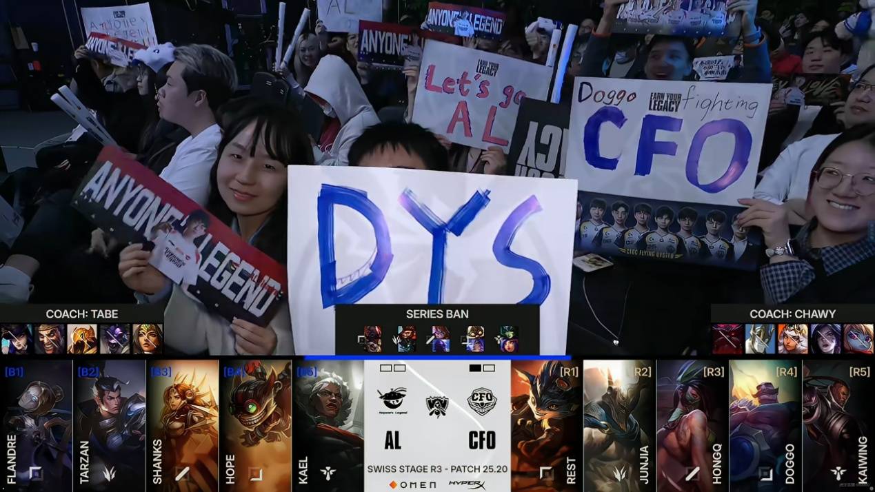 第一波的小龙争夺中CFO率先Rush,AL选择后续进场接团,结果第一时间配合就出现瑕疵,女坦先手控打野,但中野没跟上被阿卡丽突进拿下人头,后续龙坑作战中,AL又出现配合乌龙,炸弹人W导致狼母大招未能命中。