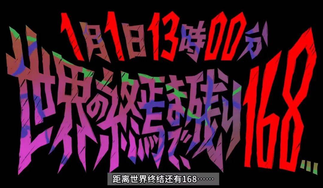 游戏开篇显示“1 月 1 日 13 时 00 分,距离世界终结还有 168……”之后的每一天,数字都会递减:167、166……玩家一般都会先入为主地以为这是末日倒计时。直到故事高潮,数字开始飞速暴跌,真相才被揭露:这个数字不是倒计时,而是当前世界上剩余存活人类的数量。上述设计巧妙地布下信息陷阱,打破玩家的思维定式,令人印象深刻。