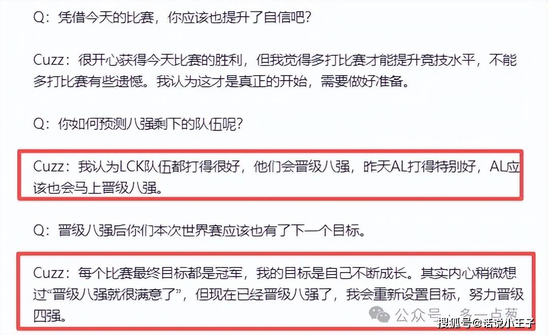 要知道,LCK4支队伍参加世界赛,KT应该是实力最弱的一支,结果KT却成为了LCK第1支晋级8强的队伍。KT成功晋级8强也让整个LCK都变得特别自信了,在赛后采访中,KT选手就直接表示,我认为LCK的队伍打的都特别好,他们都会晋级8强。最终目标就是夺冠,自己也会不断成长。其实内心稍早前是想过晋级八强就满意了,现在已经晋级8强了,我会重新设置目标,努力晋级4强。