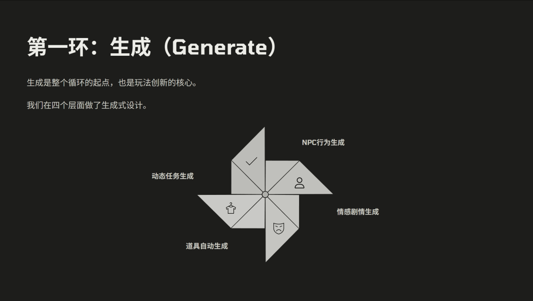接下来我们用我们的游戏去给大家讲解这个核心循环,首先是从生成开始,它是玩法创作的一个核心。