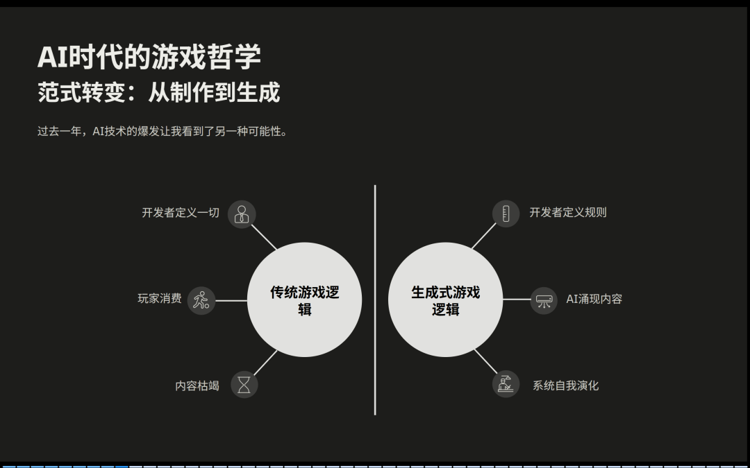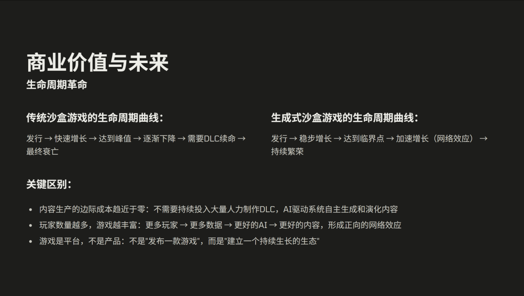 真正的区别在哪里?我认为是构建数据驱动的AI游戏生态,这个是从“内容为王”到“数据为王”的一个跃迁。