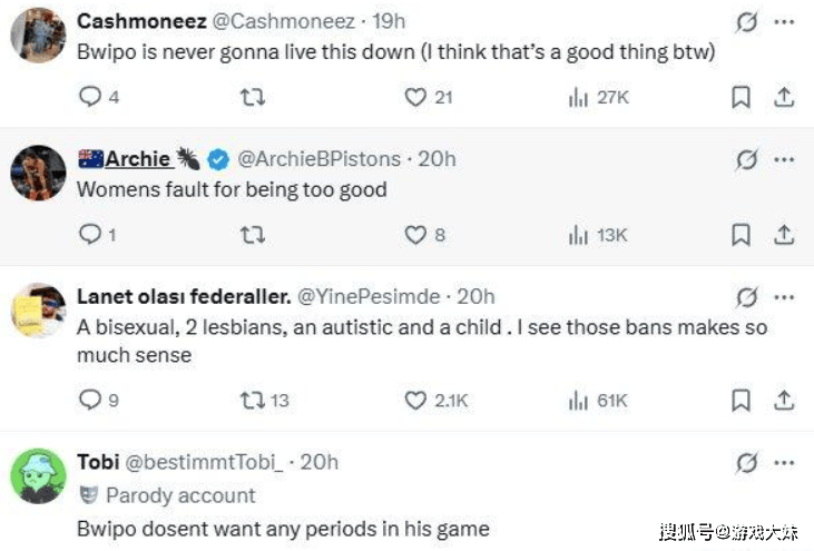 帖子一经发布,很快就在社交媒体上炸开了锅,网友们纷纷围观、留言、争论,甚至引发了中外网友的二次讨论,巧合的是,FLY上单Bwipo曾经因为“女性有生理期不适合电竞”的言论而饱受争议,这让整件事更加敏感。
