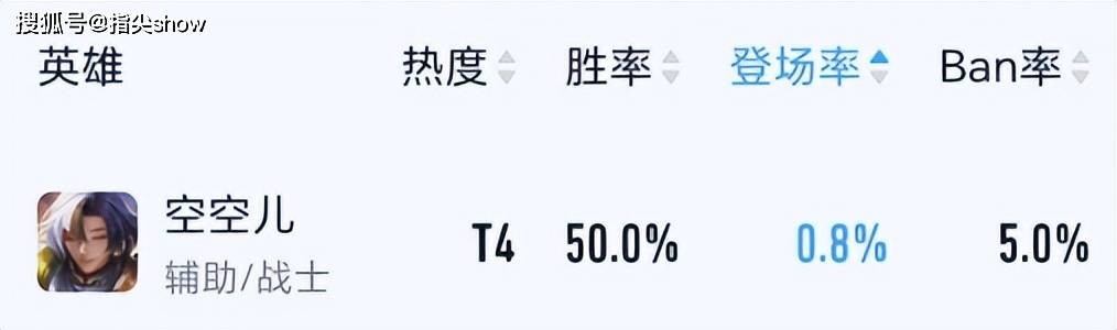 如果是顶端局,那空空儿看的就不是出场率了,而是禁用率,这样的英雄基本上放不出来。