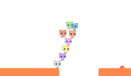 玩家需要利用所有人的力量来完成仅凭一人无法做到的动作,比如需要特定人数才能移动的方块、同时踩下多个开关才能开启的机关,以及需要“串联”起来才能跳过的巨大沟壑。游戏提供了“世界模式”的48个关卡,以及“无尽模式”和“对战模式”等多种玩法,让玩家在通关解谜和多人竞技之间切换。