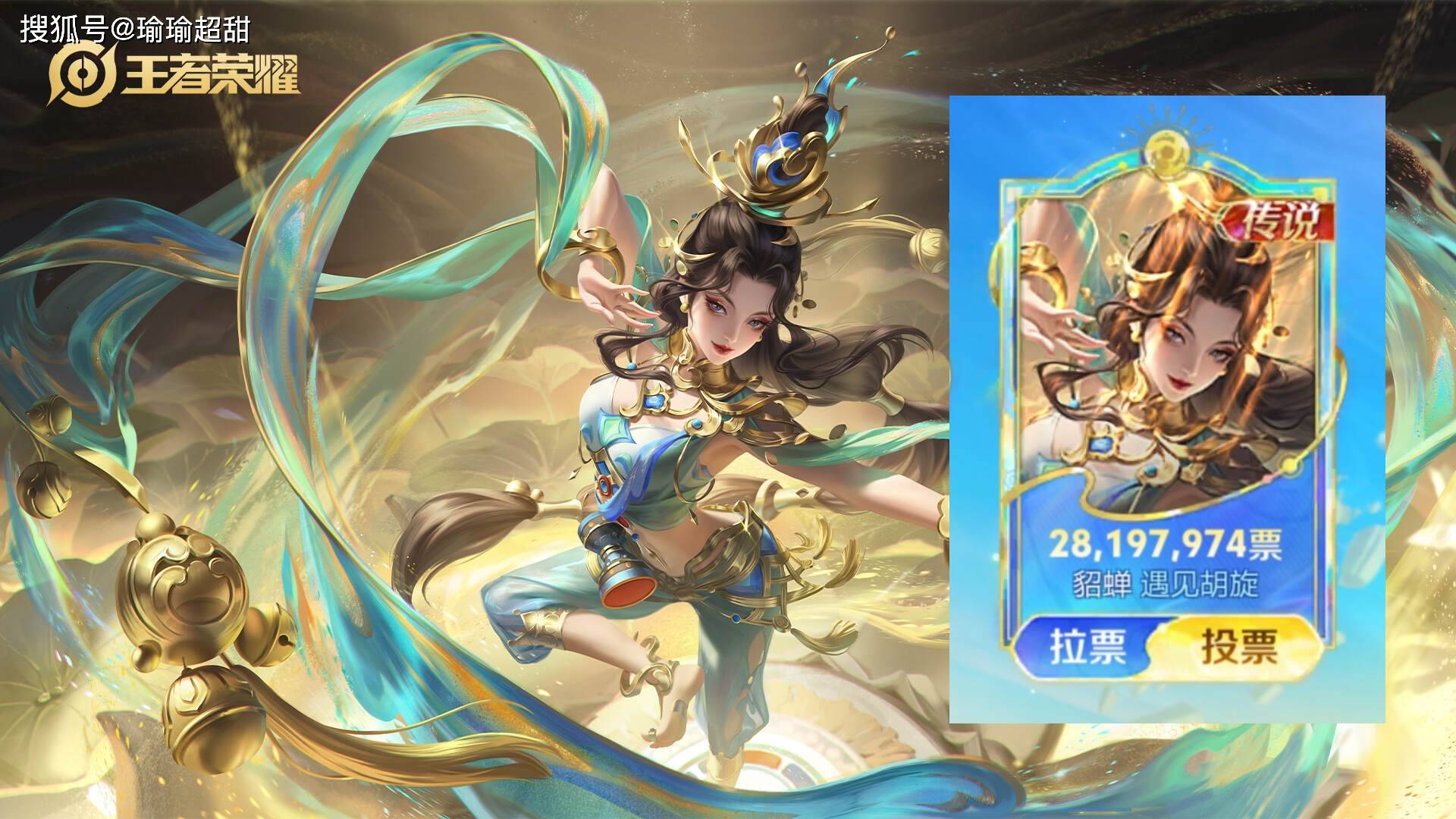 排在第7名的是貂蝉的遇见胡旋,目前票数2,819万票,票数相差其实也不大,也非常有机会超越铠的琥珀纪元或者是孙尚香的龙年限定。