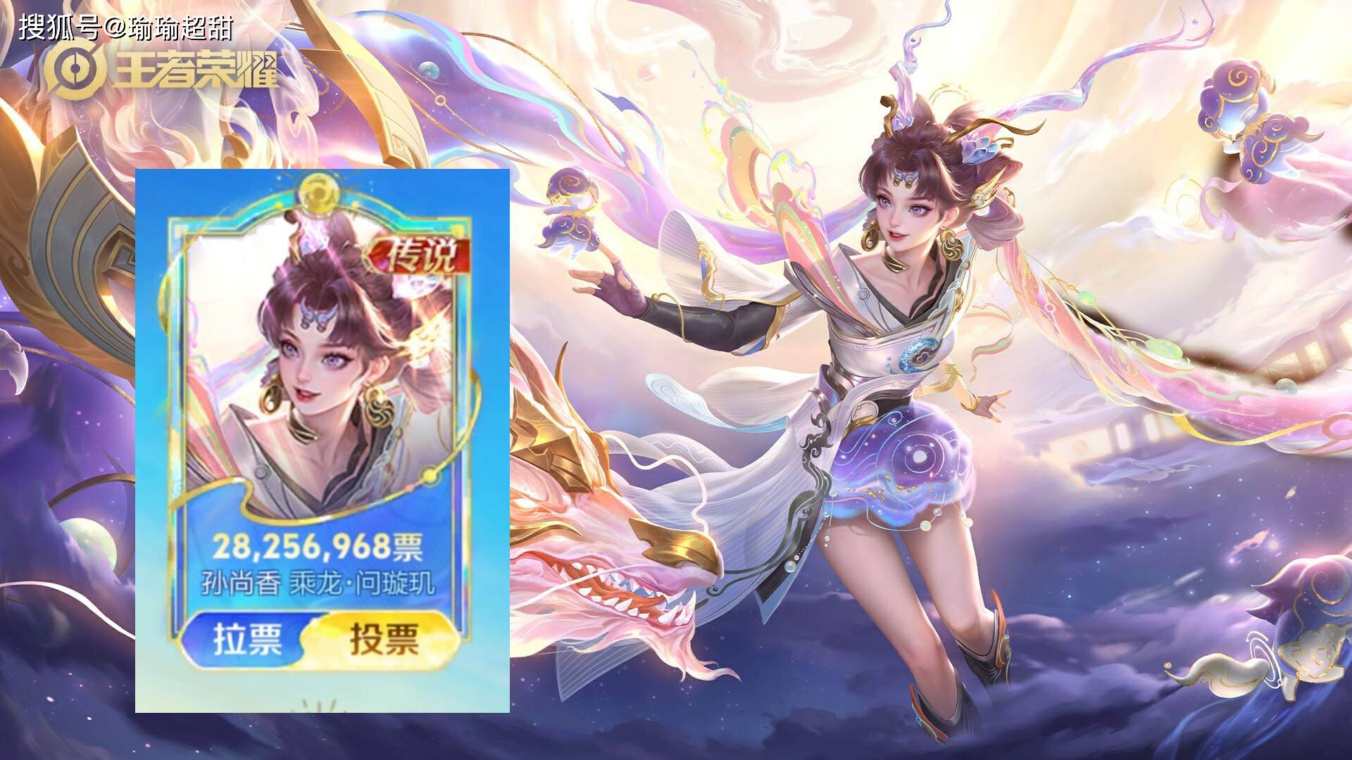 这款皮肤也是一直在反超,他在第1天的时候票数比较一般般,没想到第4天看一下他的票数就直接跑到第6名了,第1天的时候排在第6名的是赵云的龙年限定,所以这款皮肤可以说是一直反超上来的,目前票数是2,825万票,相差一点点就可以追上孙尚香的皮肤。