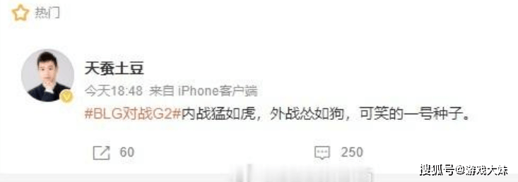 赛后,社交媒体上瞬间炸锅,网友们的失望可想而知——作为LPL的一号种子,BLG在面对欧美强队时居然显得如此被动,甚至连知名网络作家天蚕土豆都忍不住发文讽刺:“内战猛如虎,外战怂如狗,可笑的一号种子。”这句话虽尖锐,却也道出了不少粉丝的心声,毕竟BLG在LPL赛区表现统治级,但每到世界赛似乎就难以复制那份自信和气势。