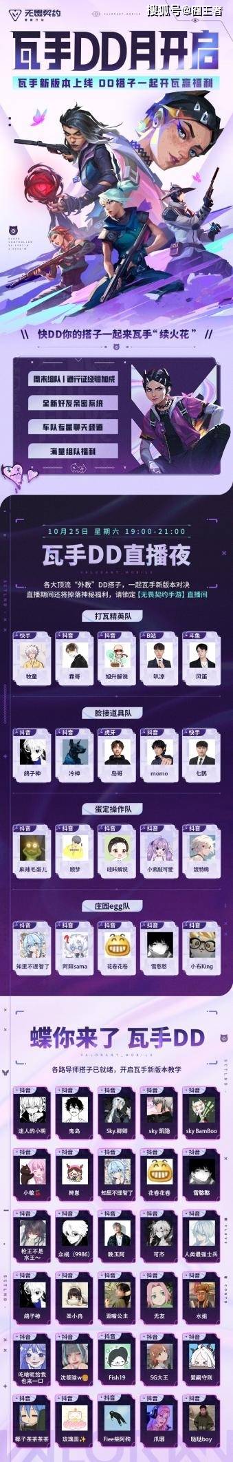 10月25日晚间,“瓦手DD夜”直播活动将同步来袭,牧童、鸽子神等来自各大平台的头部主播将同台竞技,打响暮蝶vs黑梦的PK直播,为玩家献上精彩对决时刻,更有海量惊喜福利送不停。