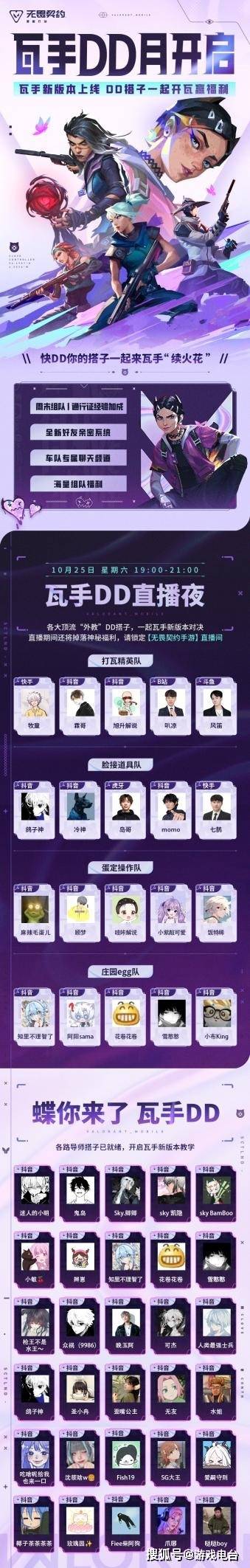 10月25日晚,“瓦手DD夜”直播活动也将盛大开启,牧童、鸽子神等头部主播将同台竞技,展开幕蝶vs黑梦的精彩对决,为玩家呈现一场紧张刺激的视觉盛宴,海量惊喜福利也将持续放送,让玩家在观看精彩比赛的同时,收获满满福利。