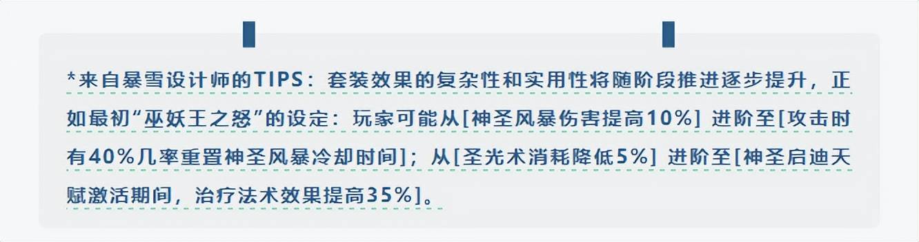 与此同时,设计师还透露套装的效果会随着不同阶段而逐步提升,例如T7套的效果[神圣风暴伤害提高10%] 到下个阶段就进阶成T10套[攻击时有40%几率重置神圣风暴冷却时间]。就是说,副本是乱序,但套装并不是,T10套不可能在第一阶段就拿到,哪怕这周开的副本是ICC,这也很好地解释时光服新出的货币极有可能是用来升级每个阶段的套装。
