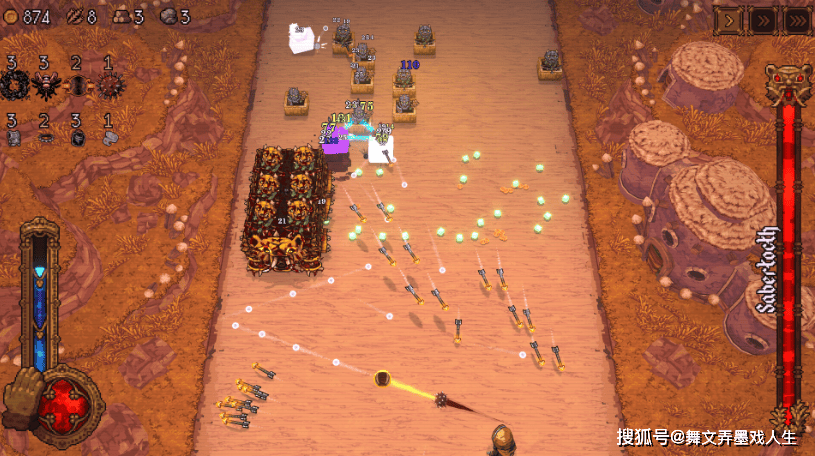 虽然《球比伦战纪》在传统打砖块游戏的基础上加入了肉鸽等元素,但与常见的肉鸽游戏需要慢慢摸索不同,它是一款进入游戏就可以畅快游玩的游戏作品。核心玩法就是在传统打砖块游戏的弹球射击的基础上,融合了框架设计技能。在击败敌人的过程中,角色可以通过技能、天赋和道具带来的增益效果实现满屏割草。