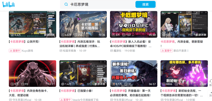 这不,在游戏上线的前一天,《卡厄思梦境》就已经在日、韩、欧美地区登上App Store免费榜榜首了。即便国服因为前两个月才刚拿到版号,还没那么快开服,心急的玩家们也在各大平台上高强度分享游戏相关的内容,相关的游戏介绍、攻略普遍播放过万,比一些近几天国服开服的二游热度还高。