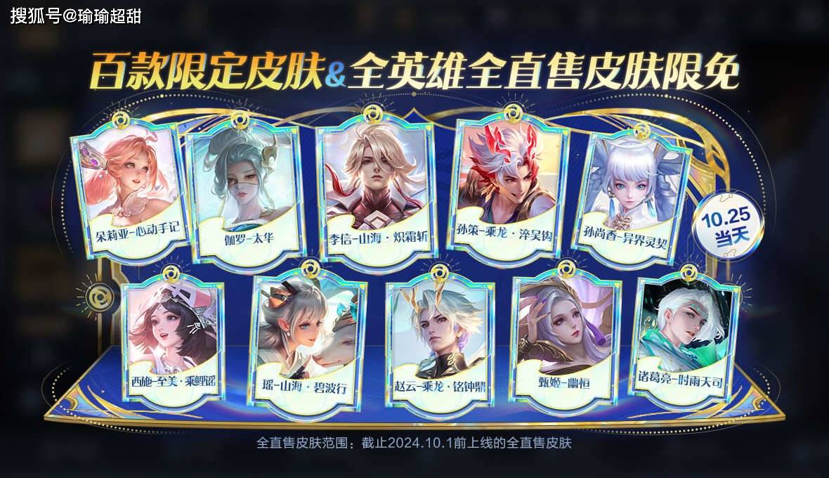 然后在10月25号当天还有一个重磅福利,很多玩家可能都没有注意,因为我看很少玩家提及,这个活动就是全英雄全直售限免活动,但这一次不同的是官方还加入了104款限定皮肤。