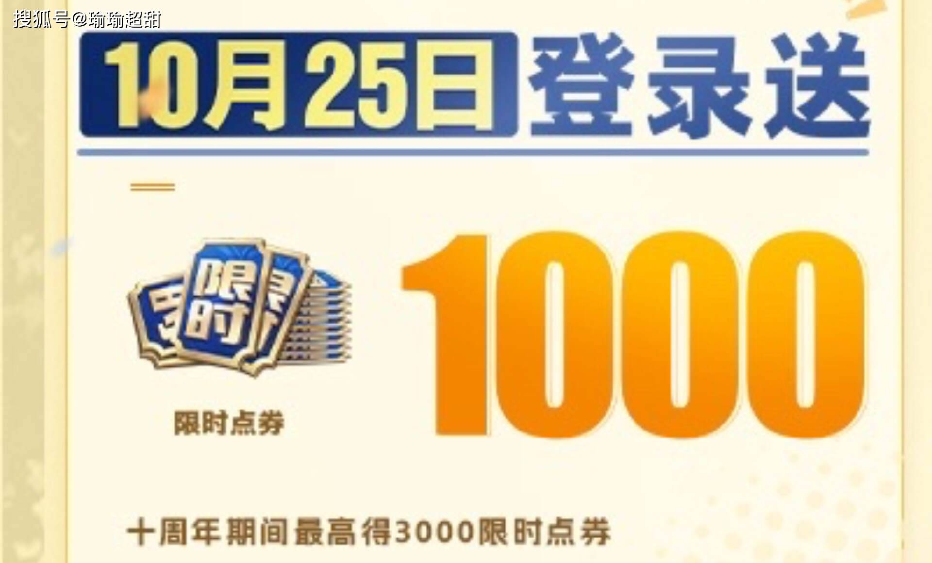 首先就是1000限时点券,根据官方公布的活动时间来看,只有在10月25号当天上线才会有,这1000限时点券相当于是可以直接白嫖后羿的传说限定皮肤,所以这一天是肯定不能错过这个福利的,要不然最高3000限时点券就少了1000。