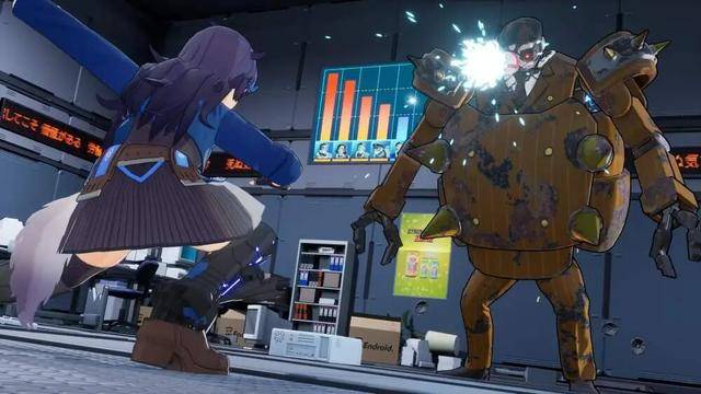 玩法上,《铁甲少女》是一款融合了 Roguelite 元素的动作射击游戏。玩家需要从大楼底层开始,一层一层地向上攻略,直至顶层。每一层的结构和敌人配置都是随机生成的,玩家必须清空该层所有房间的敌人才能进入下一层。这种“爬塔”过程构成了游戏循环的主干。战斗系统则融合了近距离格斗与远程射击。角色的双臂可以变形为各种武器,从电锯、大锤到霰弹枪、加特林,玩家需要根据战况灵活切换。游戏的核心设计在于近战攻击会消耗体力,而远程射击则有换弹间隙,这使得玩家必须策略性地交替使用两种攻击方式,避免了单一武器的单调性。