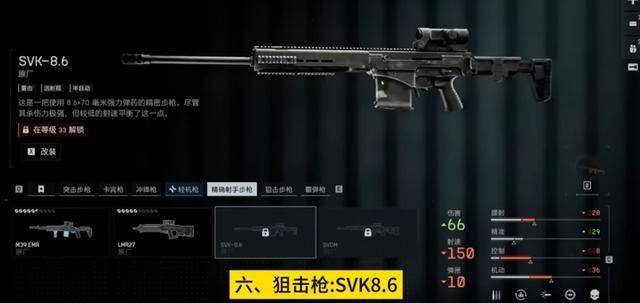 “卡宾届的六边形战士”,伤害和精准度非常逆天,出色的低后坐力和高机动性