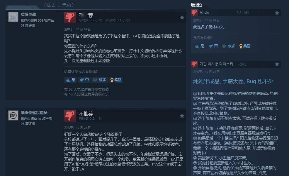 目前,《植物大战僵尸:重植版》Steam好评率为49%褒贬不一,多数玩家给出了差评。