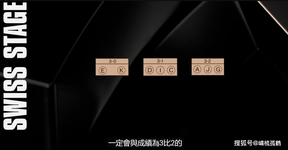 3-0的两个队伍会按照抽签的顺序,分别位列上下两个半区,然后从3-2的池子中随机抽取两个队伍,先抽中的队伍去上半区,后抽中的队伍去下半区,剩下的一支3-2队伍将被拿进3-1的混池,此时混池里的队伍是四支,然后再按照随机抽签的先后顺序确定最终的对阵,有可能是3-1打3-1,也有可能是3-1打3-2。