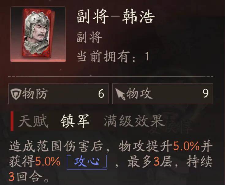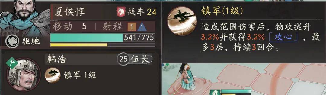 那么第一位肯定就是刚刚提到过的“韩浩”了,他的“镇军”天赋可以完美契合夏侯惇的输出模式,为夏侯惇提供更强的输出和续航能力。